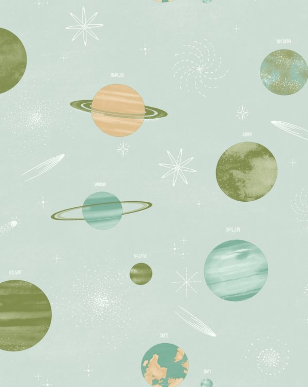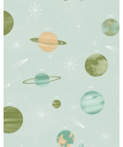El papel pintado LA VOIE LACTÉE convierte cualquier dormitorio infantil en una auténtica travesía intergaláctica. Planetas, estrellas y cometas se dibujan en tonos suaves y relajantes sobre un fondo azul verdoso, dando vida a una atmósfera soñadora, educativa y estéticamente cuidada. Perfecto para despertar la imaginación de los más pequeños y transformar la habitación en su rincón favorito del universo.